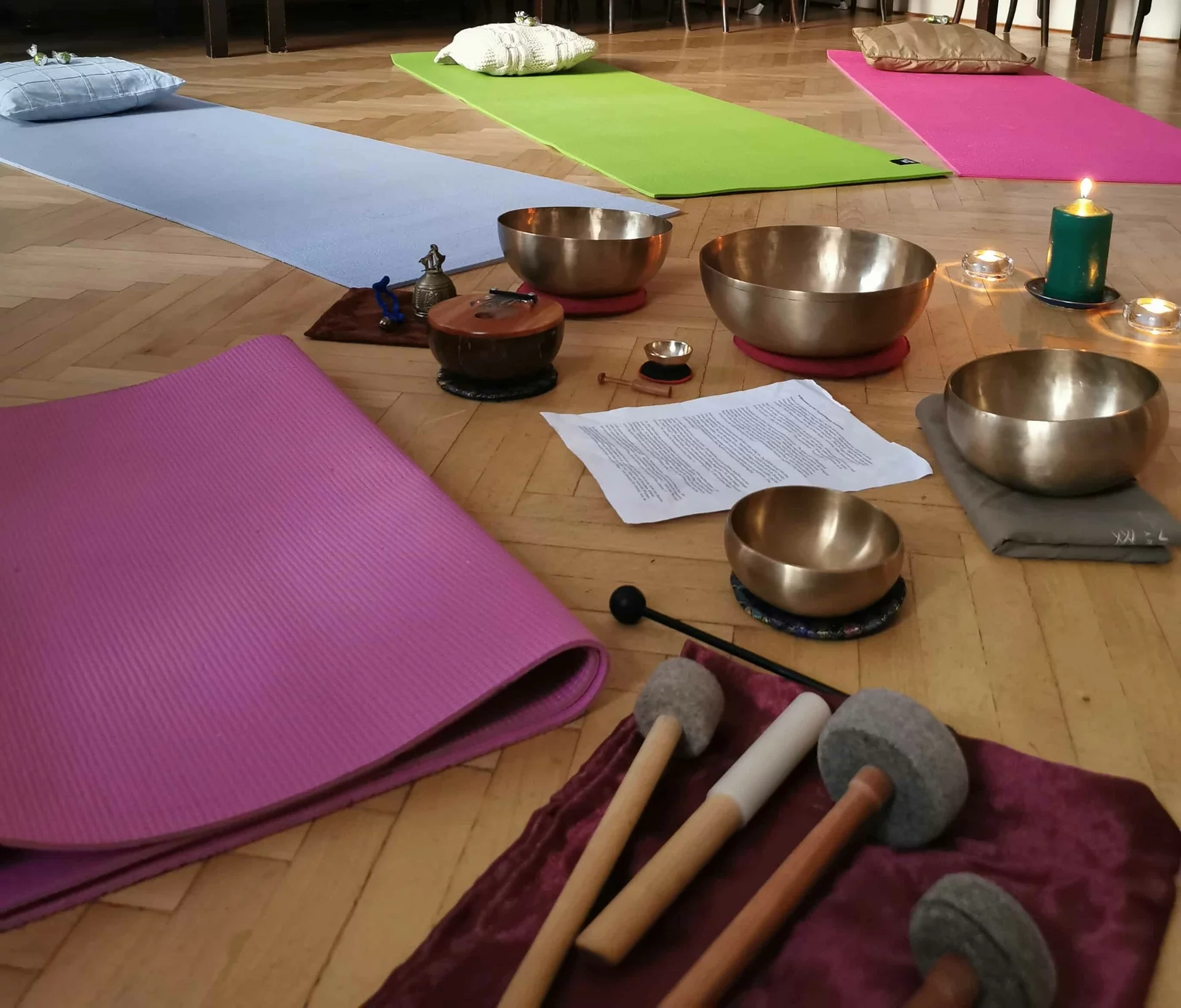 Beim Klangbad und der Soundmeditation ermöglichen tibetische Schalen, französische Koshis und weitere Klangtools ein entspannendes Eintauchen in variantenreiche Hertzfrequenzen.